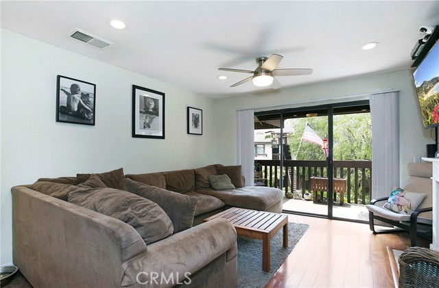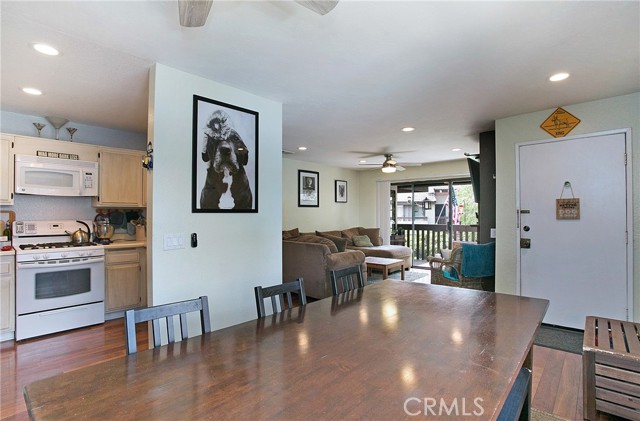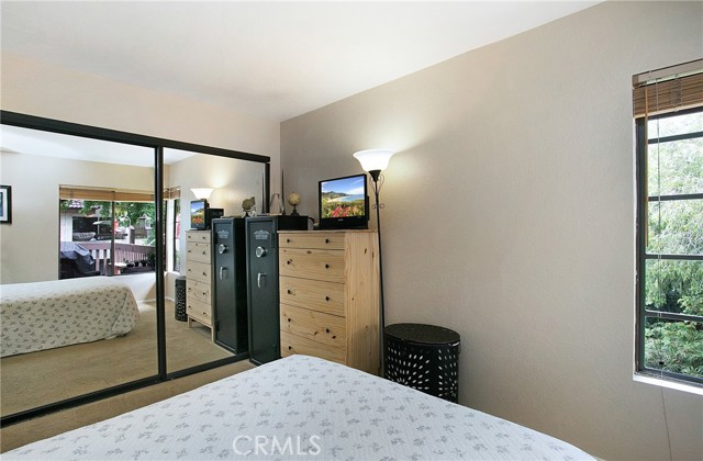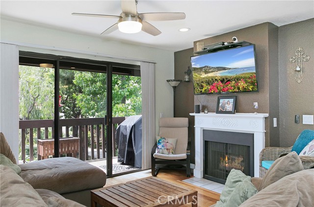 Highly desirable upstairs End-Unit in a Serene, Peaceful and Gorgeous Gated Community! Rare double balconies allow for fresh breezes and excellent natural lighting. Gas Fireplace, inside laundry closet will fit full size washer & dryer / gas hookups. Central air conditioning, whole house fan in attic and low energy Hydronic heater. Remote controlled ceiling fans in every room. Newer 5 burner gas range, convection oven, GFI outlets, built in microwave and dishwasher. Dimmable recessed lighting in living room, newer baseboards and waterproof laminate flooring in master bath. Master bath has dual sinks and a large walk-in closet with custom closet organizers and additional attic storage directly above closet. Extra storage closet on balcony overlooking the pond. Wood floors in kitchen/living/dining room and new epoxy floor coating on balconies. This end unit is ideally situated adjacent to its oversized 2 car enclosed garage with 10-foot ceilings. Garage has custom built in storage cabinets, built in shelving and a ready to go work/arts/crafts station. A must see to admire the space and what it has to offer. Situated in a beautiful complex surrounded by trees and creeks throughout giving you a sense of relaxation and peace. Complex community offers a refreshing pool, spa, tennis courts and a club house for your enjoyment. Association covers water & trash. Conveniently close to freeways (22, 405, 5 and 605) and shopping. Secure gated entry into the community with guest parking. This Move in Ready home is priced to sell As-IS so you can add your own personal touches.
